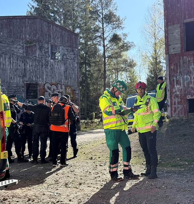 Bilden är hämtad från en av vårens samverkansövningar, mellan polis, ambulans och räddningstjänst, som hölls på Bockabyn.